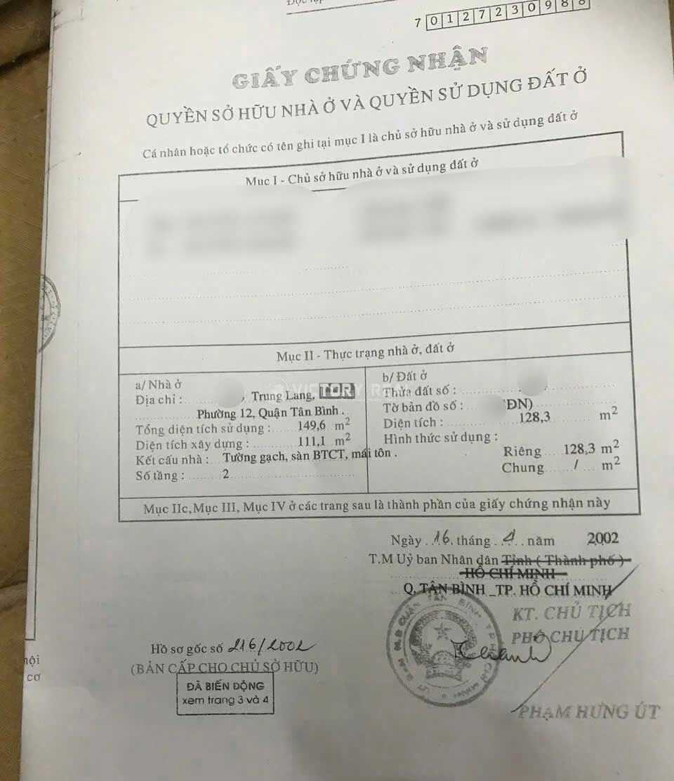 – Chính chủ về hưu, bán gấp đường Trần Mai Ninh phường 12 tân bình, gần chợ Bà Hoa.